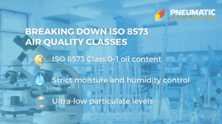 ISO 8573 provides a standardised approach to compressed-air quality that is essential for sterile production, patient safety, and product reliability. By selecting the correct system architecture, applying appropriate filtration and drying technologies, and performing regular compliance testing, medical and pharmaceutical companies can confidently meet their regulatory and operational requirements. Pneumatic Engineering is ready to support your facility with compliant compressed-air systems, quality testing, upgrades, and technical advice.