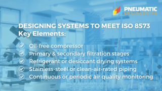 Meeting ISO 8573 requirements depends on correct compressed air system design. Key elements include: